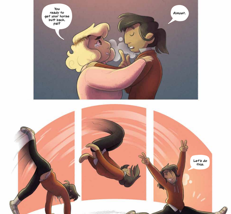Another great element of the writing is how Ellis is able to integrate humor into the book. It can be difficult for writers to find a balance that works with comedic dramas, sometimes oversaturating it with forced humor, or having humor be so absent that if it does show up it seems out of place. That hasnβt been the case with Moonstruck, and issue #5 is no exception, using humor to inform the plot to great effect. Chetβs ever present wit and optimism in spite of their lost magic and/or βbutt;β the leading rogue magician Darian using jokes and cruel mockery to show his callousness as a threat; or most importantly the stylistic contrast of the Pleasant Mountain Sisters excerpts. These interstitials at first appeared as humorous distractions semi-related to how Julie reacts to the plot, but by the end of issue #5 are used with such sharp precision to perfectly represent Julieβs character progression.