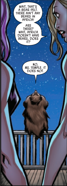 BaldeΓ³n and Shelfer show their creative abilities in the design of ShoonβKwaβs armor. Inspired by an ancient African bear, it pays homage to her Wakandan roots, and gives her a unique look. The same level of detail is shown to Domino, Outlaw, and Diamondbackβs costume changes, and all of the backgrounds.