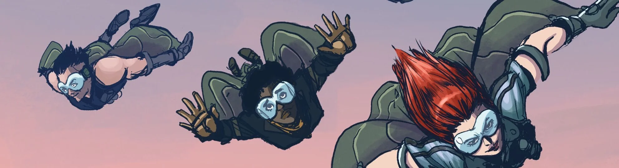 Intel said that the enemy squad wouldnβt drop until morning. (Thatβs what Squad Leader Holland says, anyway.) Cavalry Scout Badger doesnβt think itβs a squad, though. Itβs something else. The squad leader is persistent, though. Canβt run the risk of getting beat to the payload. Then, Hoops blows up in a bloody mess, and all bets are off. Welcome to Northern Ukraine in 2037. Welcome to the first issue of Savage Squad 6. The writing team of Robert Venditti and Brockton McKinney open a surprisingly promising new dystopian military series for Dark Horse with artist Dalts Dalton and colorist Geraldo Filho.