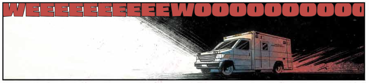 Fullerton and Walsh mark the procession of the series into late evening with darker work and even heavier inks than they’ve managed before in theseries thus far. Bellaire’s colors foloow the simplicity of the art in braos washes of red and very simple colors which climb to the spaces between the patches of ink. Quite often the overall approach to the art works quite well. There ARE places, howereve,r where a higher resolution and greater detail might amplify the sense of horror that’s glowing through theseries. This WOULD, however, compromise the inky moodiness that so dominates the visual reality of the series.