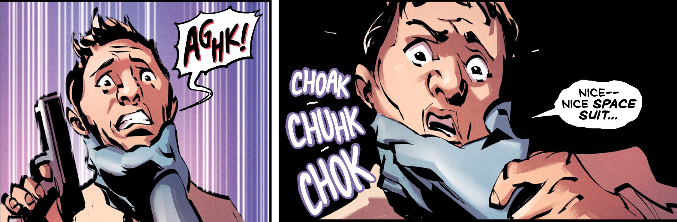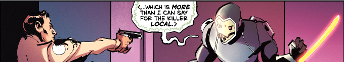 Though there have been occasional four days into this type of thing, the security guard has been generally a minor supporting character in most action adventure series. So it's fun to see a close-up on a character who is just a peripheral NPC in most cases. That guy you see out of the corner of the panel turns out to be a major demon. And largely because of his own stupidity. But that doesn't mean he's not efficient. That doesn't mean he's not effective. That doesn't mean he isn't going to experience some kind of strange miracle in his own survival. Orlando has a really clever approach here. And it will be interesting to see where he takes it in issues to come.