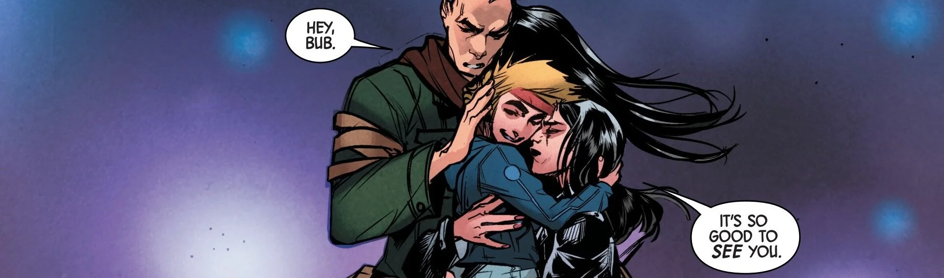Kinney has recently been exploring a little bit of alternate reality energy in her own titleLaura Kinney : Wolverine. It's kind of fun to see it extended in a different direction with respect to the new multi-title event. Her personality remains strong, even in the face of something as personality altering as parenthood. Theoretically, the big event would be an interesting opportunity to explore a different characters might interact in a world where they're really is a mutant dictatorship. Kenny could have gone in either direction of supporting the dictatorship or being part of the resistance. Choosing to have her as an ally of the dictator is an interesting maneuver. It will be interesting to see where this leads for Kinney.