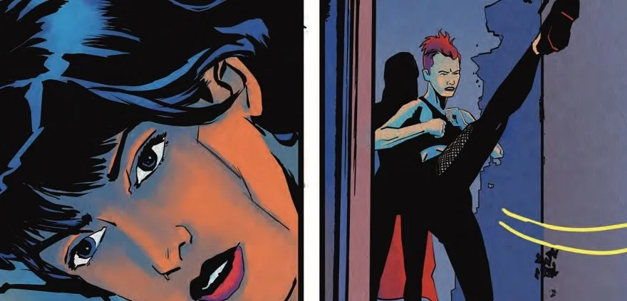Finnegan centers the art squarely on the characters. There isnβt a whole lot of atmsphere that goes beyond the interpersonal drama. The fact hat the rdrama in question happens to be going on between an assassin, an alien vampire, a psychic woman from Mars and so on...tHATβs what makes it visually interesting. And there may not be a whole lot of dramatic complexity drawn into the page in the form of thoguhtful nance, but Finnegan DOES make it all look very, very good from beginning to end. Itβs stylish stuff thatβs made all the more appealing by Wrightβs sumptuous color work.