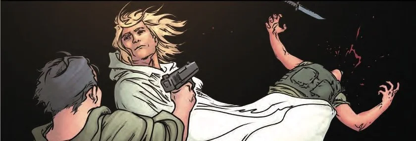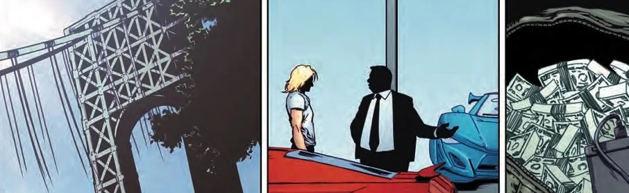 They really should have seen the stranger walking into their camp. Anyone who is that heavily armed and that obvious about what it is that theyβre doing really needs heavy security. Some casual-looking guy walks right int their camp. Introduces himself as βPeter.β They ask him if heβs a police officer. He tells them that he isnβt. Theyβre upset so they attack. Heβs got no firearms on him. Heβs just one guy. They donβt stand a chance. A few pages later, he has a duffel bag full of their cash. He rides-off with it on one of their motorcycles his adventure is just beginning.