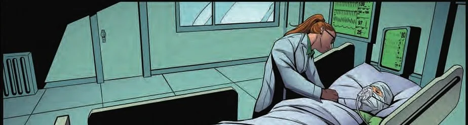 It's kind of nice seeing Dynomutt in action. Qualano makes the cyber dogβs goofy Hanna-Barbera robot powers are truly terrifying. It's not an easy thing to do given how goofy it always looked in the cartoons. There's real menace on the page here. And it's nice to see a hero who is always just so very silly and made for TV turn into something truly dark. The idea of having these villains trying to attack him in a hospital while he's essentially incapacitated, it is kind of horrifying in its own way. And this horror is not lost on the artist. It's really valid executed stuff that looks dark without looking like it's trying to be dark.