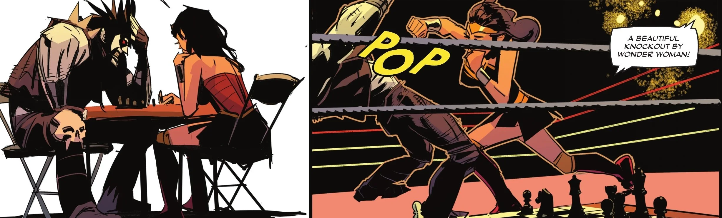 The problem with so many of the entries in the crossover even so far...is that they’re taking an incredibly stupid idea seriously. DC K.O. is remarkably childish. Jones’ approach to that childishness is to simply have fun with it. As a result, Wonder Woman vs. Lobo ends-up getting it right. It doesn’t hurt that Lobo is himself a kind of a rubbery Loony Tunes-style character who fits the silly slapstick format of an absurdist three-round fight. It’s good, goofy fun.