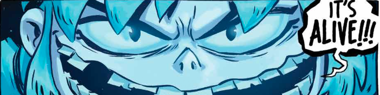 Gert is crying. Itβs not often that someone with her particular psychological situation would find herself crying, but there she is. So naturally, the little bug that just might be her closest friend decides that he wants to ask he what sheβs crying about. Sheβs crying about a book. That book is Frankenstein. Sheβs inspired. She canβt help herself. She wants to reanimate the dead in I Hate Fairyland #46. Writer Skottie Young and artist Derek Laufman continue their long, strange fugue of a comic fantasy comic book...taking the narrative in a direction that draws comedy from one of the most widely-appealing horror stories ever written.