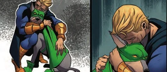 Itβs not clear who is attacking them. It IS clear that the one who is targeting them has a lot of funding. Theyβve already done away with a lot of the enemy units and there are another 600 on their way. Good thing that itβs only a dream sequence thatβs opening Blue Falcon and Dynomutt #4. Writer Jimmy. Palmiotti and artist Pasquale Qualano continue their revival of the old animated hero from Saturday mornings with the aid of colorist Jorge Sutil. Itβs a fun reimagining of the character that gets into the heart of a buddy action story between a man and his dog.