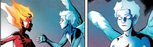 Snejbjergβs clean lines and dynamic layout continue to give the title a strong sense of presence on the page. Kaliszβs colors lend a resonance to the page that allows both celestial and infernal energies from Heaven and Hell to feel firmly present on the page. It all feels like it fits on the page more or less pefetly as it comes together at the end of the current storyline. Both Zach and Rose look a bit more composed and a bit more confident on the page than they did in the first couple of issues. The subtlety that Snejbjeg is able to put into that development is really impressive.