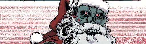 Itβs the future. Itβs after Judgment day in fact. And itβs the evening of December 24th. That date meant something once. Now that. Skynetβs taken over, itβs a night for survival just like any other. A T-800 has been sent out to hunt down a small resistence group. Theyβre having trouble enough witht he drones. A deadly killing machine, though? THATβS going to be almost impossible. Theyβre going to have a hell of a time making it to Christmas morning in The Terminator: Santa Claus Is Coming to Town. Writer Paulina Ganucheau delivers a festive yuletide sci-fi horror with artist/colorist Kendall Goode.