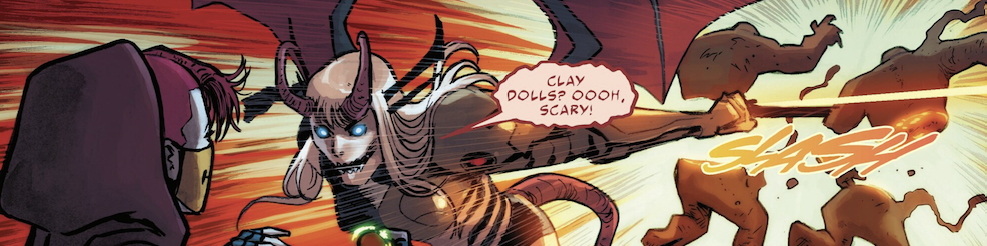 It's been a long and winding saga for Illyana over the course of the past half year. It's been fun seeing Allen explorer this particular character in this much detail. As tight, a close-up as it is, the character still remains such a mystery on so many different levels. That much is really impressive given the nature of everything. Allen maintain an impressive balance between a revealing a lot of deep emotional reality to the page and keeping enough shadow around the edges of Illyana’s mind to keep her reasonably mysterious.