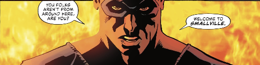 There’s a building burning in Smallville. A lone, masked figure stands alone in front of it. Four fantastic-looking figures face him. Tensions are high and they’re about to get worse. A gang led by a garish chalk-white girl has just emerged from the bank. The gang is about to make-off with a valuable artifact. Perhaps the group of fantastic figures might somehow find some way to band together and defend justice. It’s worth a shot, anyway. There’s no telling what might happen if they don’t set aside their differences and act together to protect the town.