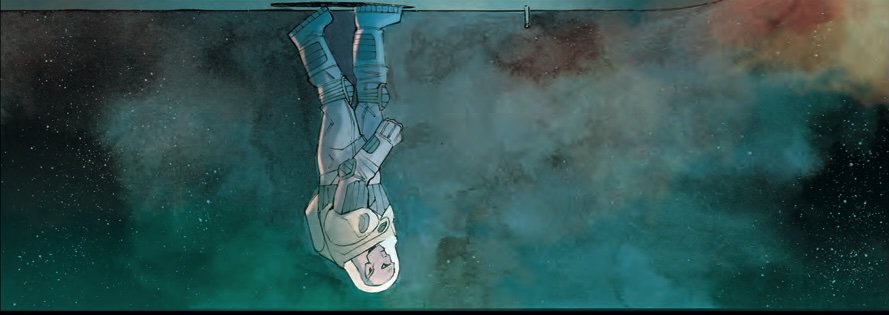It's difficult to really pull across the feeling of fantastic mystery in exploration on the page of a comic book, which is largely action fantasy based. I'm trying to get the real power of the exploration and the fascination of that cross on the page can be very, very difficult. Shalvey doesn't offer the art team a whole lot of opportunity to really explore anything truly mysterious and novel. However, perhaps there's a bit of a mystery and just how common place it all looks. There's a space station in low orbit that seems to have been abandoned only a brief time ago. The fact that it looks as simple as it does only provides more mystery. But it doesn't necessarily look fantastic.