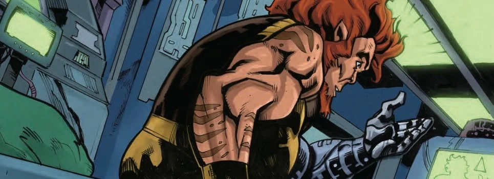 Ligon is waking-up in a strange place. That fact that heβs waking-up at al is a bit of a shock to him. So it the prosthetic arm. Itβs not just artificial: itβs metal. Itβs a cybernetic enhancement. And there are more where that came from. In order to save his life, they had to replace his heart and his lungs as well. Ligon finds himself in a completely new world in ThunderCats: Lost In Time #1. Writer Ed Brisson continues his ThunderCats saga with a transitional one-shot between series. The interstitial story comes to the page courtesy of the art team of Chris Campana, Alessandra Miracolo, Gerardo Gambone and Vincenzo Federici. Ellie Wright crafts the colors.