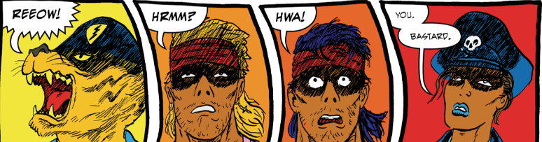 Ziritt’s art is enjoyably crude. It has a mid-1980s indie comic feel about it. The scratching is. The heavy detail. The lack of depth or sophistication in the rendering. It all feels so very, very familiar. And if it didn't feel as familiar as it did, it would seem abrasively juvenile. Rather than going for anything stylish or complex, Ziritt pulls in the action into the page in a way that feels reasonably appealing. Thankfully, the artist isn't trying to do do anything to complicated with framing the art as a video game or anything like that. That might work under different circumstances. With the artist style, however, it's best to just approach the action of the story in a very straightforward manner.