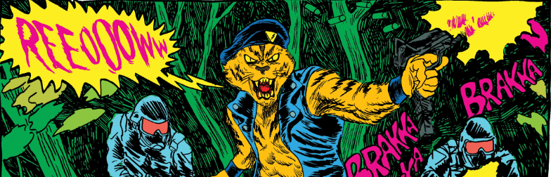 There’s a pyramid in the jungle. Commander Thunderfang is approaching the structure. He’s ready to launch an assault. It’s a heavily-fortified facility, though. Thankfully, he’s not going-in alone. He’s accompanied by a couple of elites: Bash and Crash Biggle. They may be up against almost insurmountable odds, but these are action heroes. There’s a good chance that they’ll be able to emerge victorious, right? They’re about to find-out in Death Fight Forever #1. Writer Andrew MacLean and artist Alexis Ziritt open a video game-inspired action comedy miniseries that moves swiftly forward under the power of carefully curated action movie tropes.