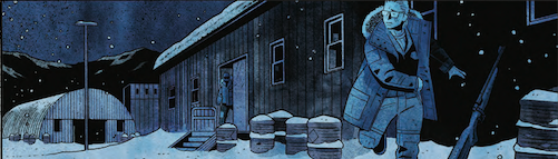 Shalvey and McConville are clearly paying homage to the specific format of Carpenter’s The Thing. The script that they’re delivering hits with the same kind of paranoia and follows a staggeringly similar story. It comes across quite clearly as a simple matter of abbreviated substitution. Rather than the mother of all vicious monsters, the base is visited by a terminator unit. Though it follows the overall rhythm of the 1982 film pretty closely, there ARE a few surprises here and there that keep the story fun.