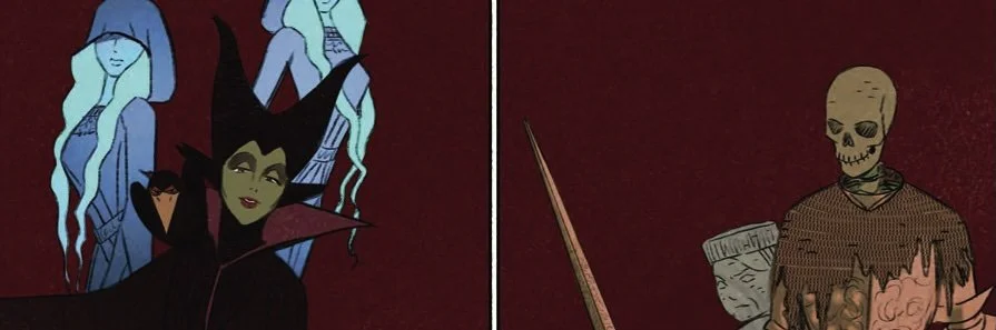 The long-dead warrior stands defiant against a powerful mistress of evil. Heβs valiant, but he hasnβt exactly got a whole lot to lose. (He IS dead after all.) She seems to have the upper hand. The skeletal warrior doesnβt hold much of a defense against a woman capable of wielding vast magics. Heβs not alone in his opposition of the mistress, though. There are others who would stand to gain much from her. downfall in Maleficent #5. Writer Paulina Ganucheau and artist Theo Stultz conclude their Sleeping Beauty prequel with style and poise that feels strikingly well-rendered both conceptually and visually.