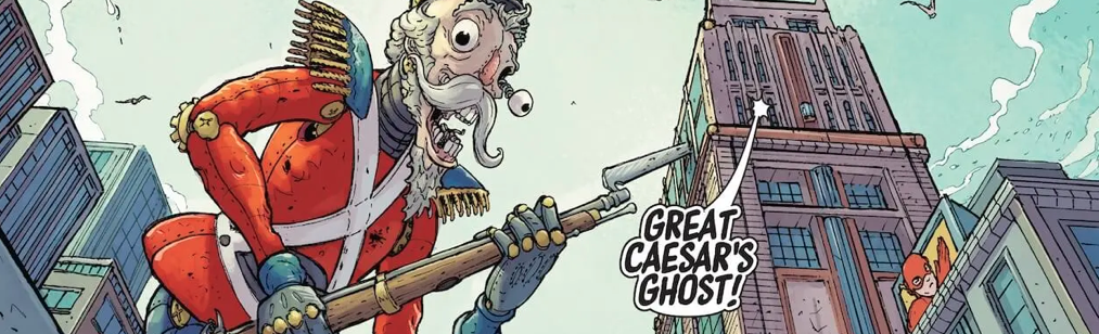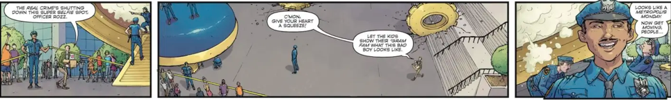 The concept of a reverse world that still somehow manages to be a lot like Earth is a remarkably appealing idea for any comedic writer to sink their teeth into. Smith has a sharp and witty execution with the idea with a deep love and respect for aspects of the DC Universe that shines through a particularly well-grounded intro to the series. The opening issue features the kind of ensemble-based comedy that Smith had been so clever at developing in his movies. There’s an editorial meeting at the Daily Planet offices as a massive Toyman automaton looks on. Deliciousl absurdist stuff. Once Smith and company crossover into the other world, things get particularly fun.