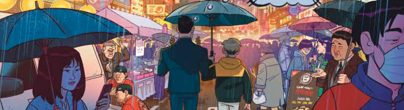 Kim's script requires a great deal of subtlety in execution of drama. Perez delivers the intricate subtle to other drama to the page in a wave that also respects the distinct flavor and visual presence of Seoul. That's a really sharp economy about Perez's work that deliverance, a profound sense of presence and depth and detail with a minimal amount of lines. The result is a very well developed atmosphere and a very cleverly rendered amount of dramatic detail without bogging down the page and too much detail. It's a graphically appealing presentation that serves the story quite well.