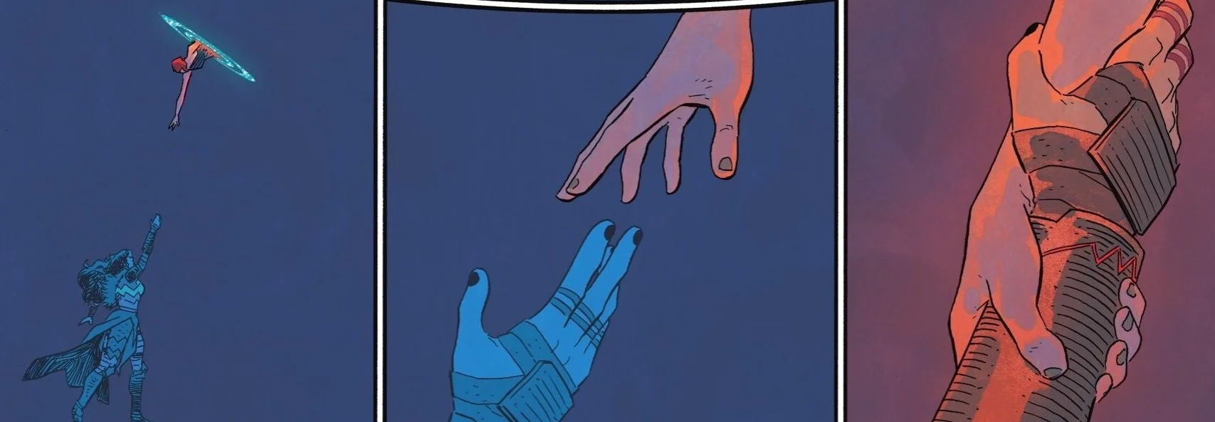 Sherman once again does an impressive job of rendering the visuals. The magic in the foreground. The architectural work i the background. It all feels so sharply-defined. Danger and drama hit the page in equal measure. The line work is impressive. This might be some of colorist Jordie Bellaireβs best work in recent memory. The visual effect of the Troika looks absolutely gorgeous. The script allows her to work with a wider color pallet than sheβs been able to use on the series in the recent past. Sheβs bringing quite a range of color to the page that gives an immersive mood to the page.