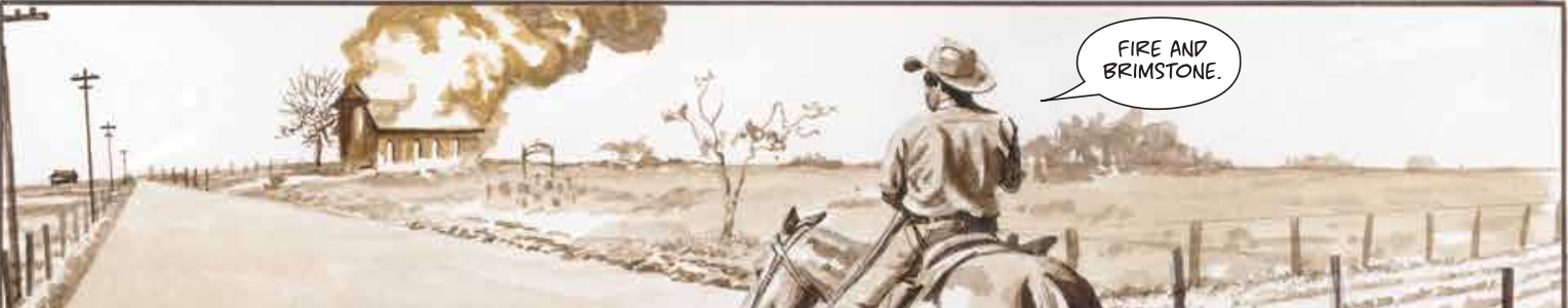 The sepia tone artwork continues to feel quite authentic as the series draws to a close. That being said...it feels a bit awkward and posed. The action that’s conjured to the page feels stiff...except for those few panels that make-up the climax of the story. The visual effect IS interesting, but it lacks the haunting resonance of the high resolution photography of the FSA Dust Bowl photography that was so vividly haunting. The low-res effect of Jones’ art doesn’t quite capture the full detail of the historical setting that serves as the background for the series.